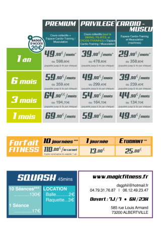 - Fitness- Squash- Accès machines Cardio-Training - Musculation- Tarif étudiant